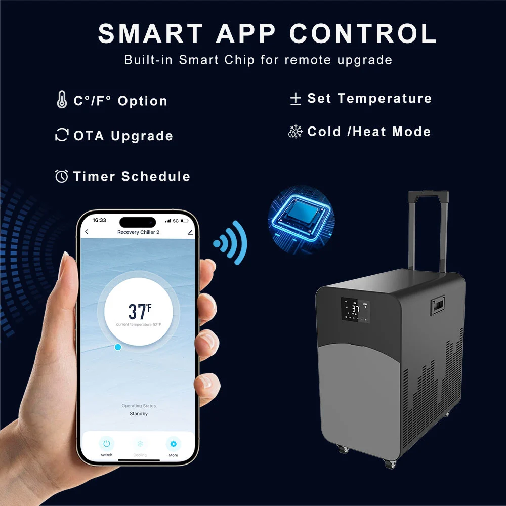 ✅ Powerful Cooling System – Quickly lowers water temperature for an optimal ice bath experience.